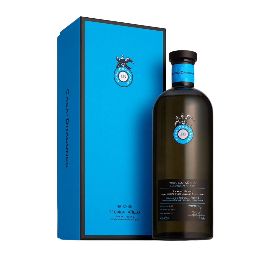 Tequila100% puro de Agave Azul. Añejado en barricas de roble francés y roble americano.